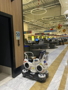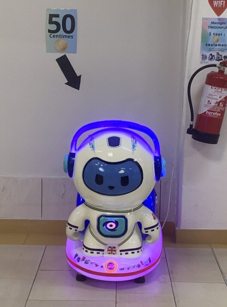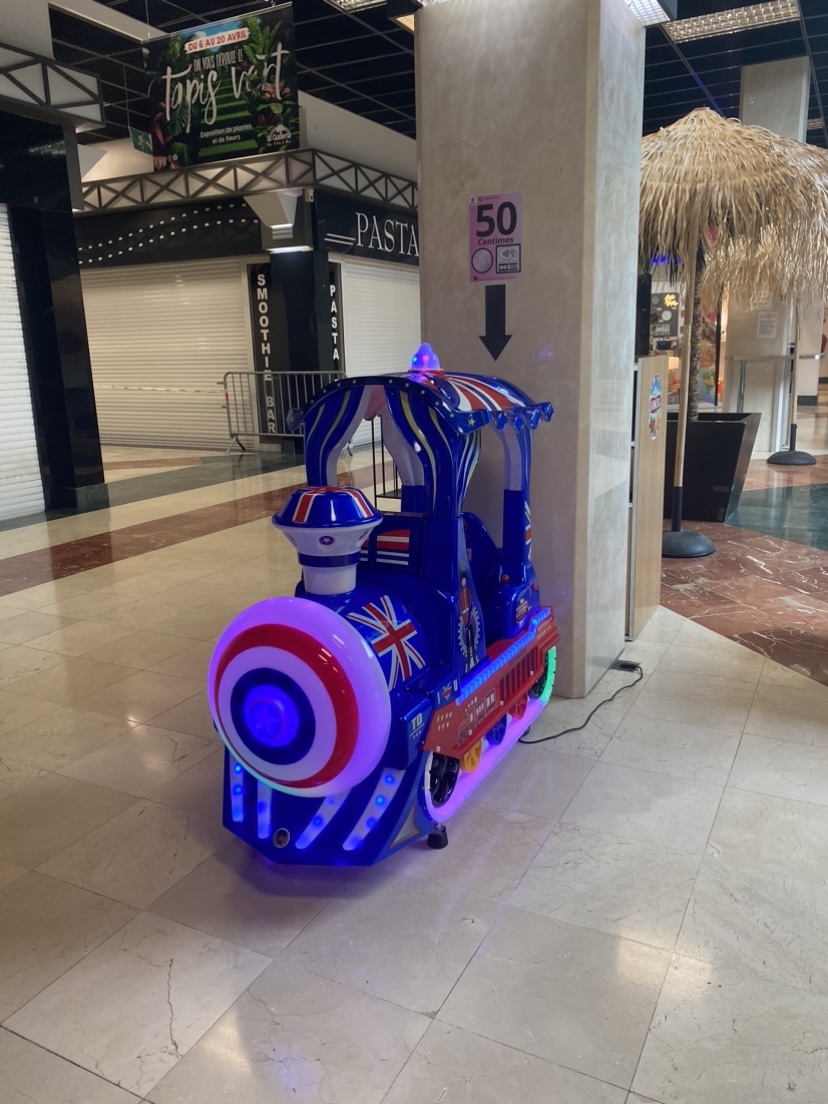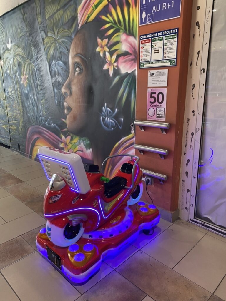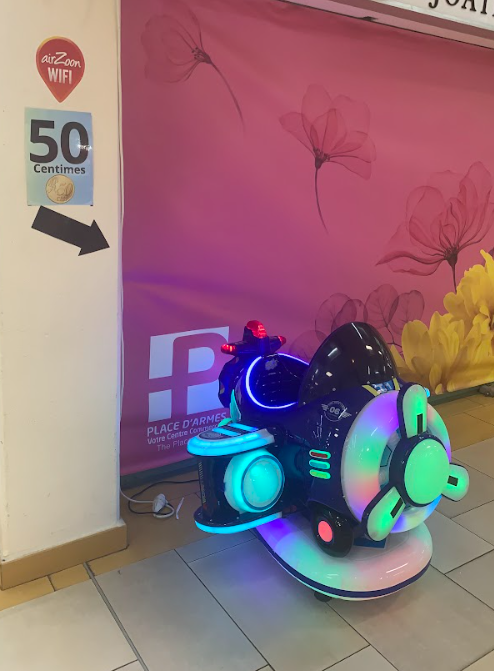 L’avion est à côté du snack Elizé, près du magasins de chaussures.